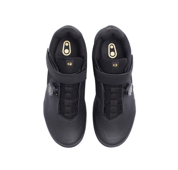 Crankbrothers Mallet Boa+Strap Shoes 7 US, 39.5 EU, 25.2 CM, Preinstalled Cleats Rubber, Synthetic Leather Black, Gold