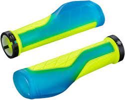 SupaCaz Kush Ergo Grips High Performance Rubber, Aluminum Neon Blue / Neon Yellow